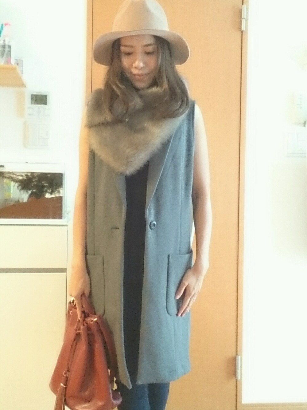 ジレ 着る期間短いから迷ったけどティペット巻いたら温かいし寒くなったら中をタートルにしたり使えそう~♪ ジーナシスのスキニーパンツもストレッチ効いててめっちゃ履きやすい~\(^^)/