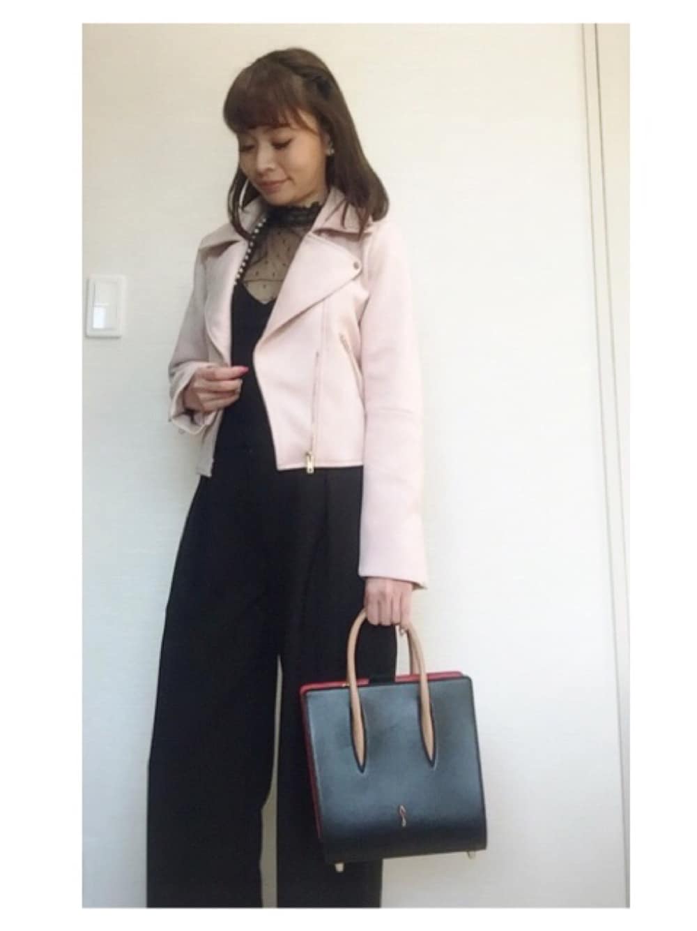 ピンクのライダースこーで♡