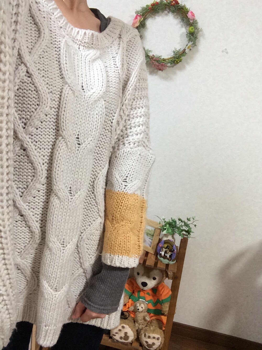 ぴーさん。のニット/セーター「KBF モヘヤスリーブケーブルニット」を使ったコーディネート