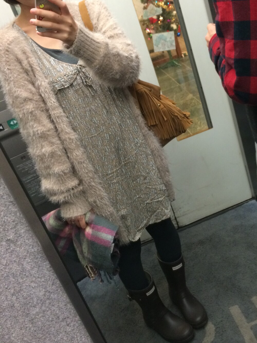 11/14* ワンピース…mystic ストール…mystic バッグ…mystic ベージュ×ベージュの異素材でワントーンコーデしました(^ ^) 今日は旦那とデート♡♡ 無事友達の誕プレも買えたし良かったです☆