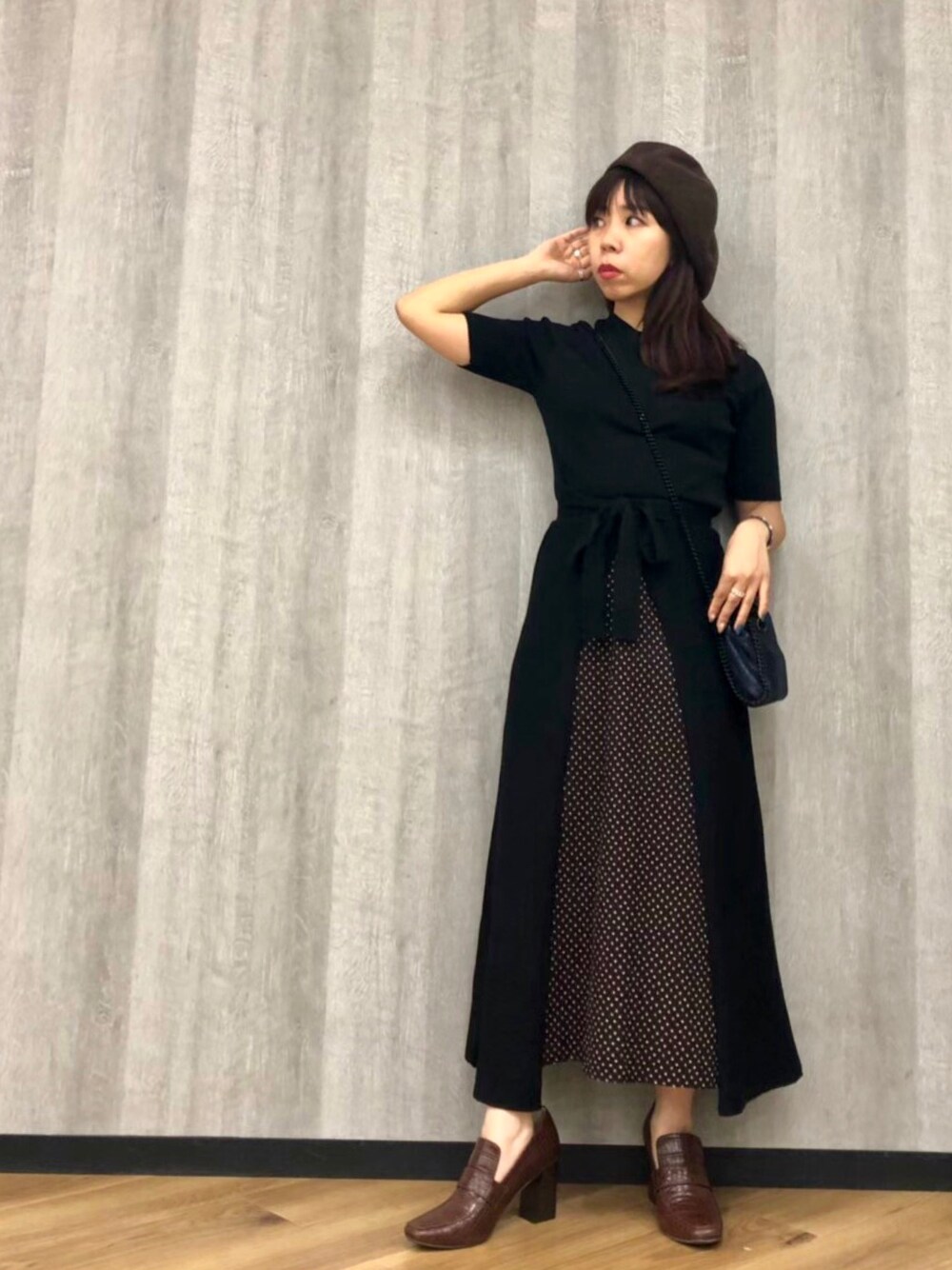 M O E K Oのワンピース「フロントフハクニットワンピース850349」を使ったコーディネート