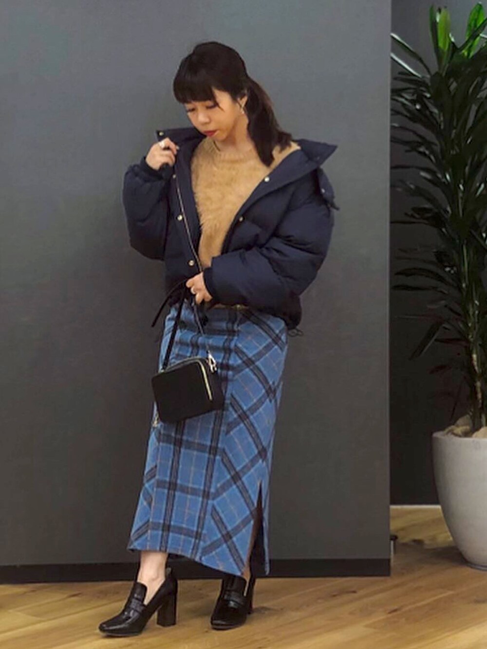 チェックスカートが主役❤︎ ダウンでカジュアルダウン😙 ダウン暖かくてこれからの時期大活躍間違いなし♡