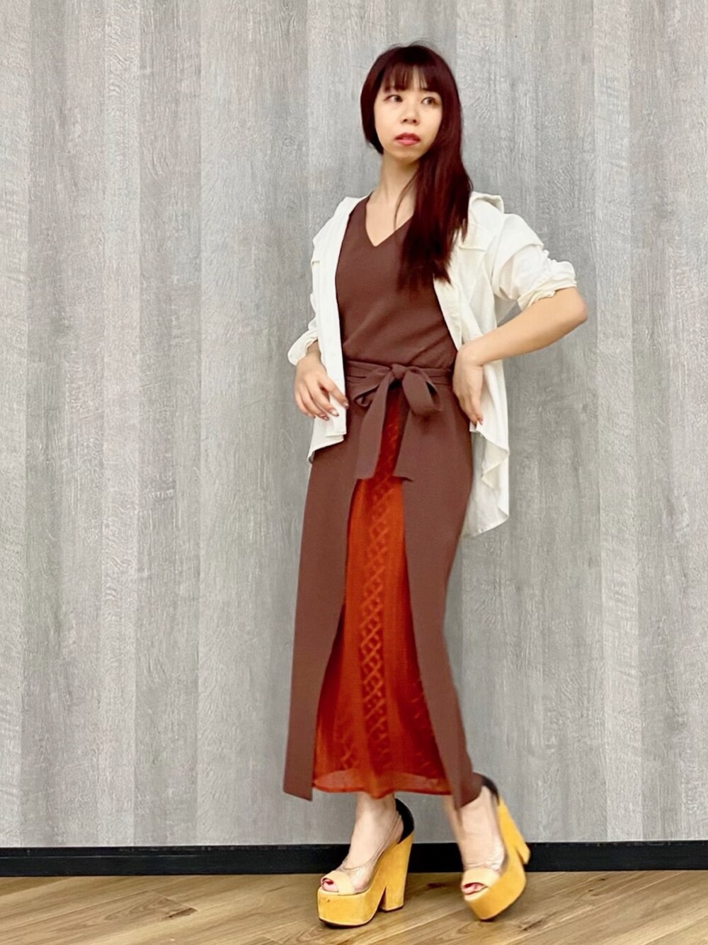 レイヤード風のニットワンピ。 Vネックでスッキリ見えするし、 サラッとしたニットでストレスフリーな着心地 ノースリなのでリネンシャツと合わせて オフィスにもオッケーなちょいカジュアルダウンしたスタイルに。 シャツは夏の冷房対策にも一枚持ってると 着回しできるし、テロテロ過ぎないので きちんと感も出るのでお勧めです!