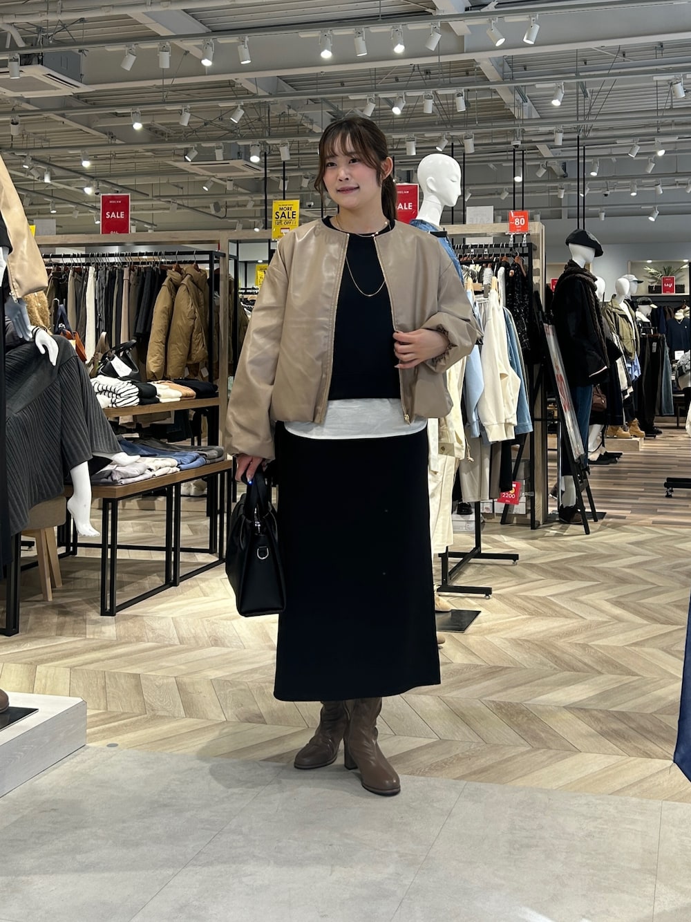 ♡アウター 合皮ブルゾンだけど、裾のバルーンシルエットで女性らしい印象にしてくれるのがポイント✨ショート丈で、 柔らかいので着心地はとても良いです🙆♀️ スカートやワンピースなどフェミニンスタイルと相性抜群の春ブルゾンです! ♡セットアップ とっても柔らかいダンボール素材のスウェットセットアップ。 フリーサイズで、特にプルオーバーはかなりゆったりと着ていただけるサイズ感でした! レイヤード見えするデザインがポイントです🙆♀️後ろの方が長い丈感なので腰周りをカバーできちゃいます!! ナロースカートは、ウエスト部分はゴムになっているので、ストレスフリーな履き心地でした。伸縮性抜群な上、後ろにスリットが入っていて抜け感もばっちりです✨️ セットで着ても他のアイテムと着回しても大人かわいいゆるコーデか完成しちゃいます✨ ♡ブーツ 秋冬マストで持っておきたいショートブーツ。 スッキリとしたシルエットなのでキレイめのワンピースやデニムとの相性も良いです🙆♀️ ヒールは低めで歩きやすいので、長時間履いても大丈夫です!!