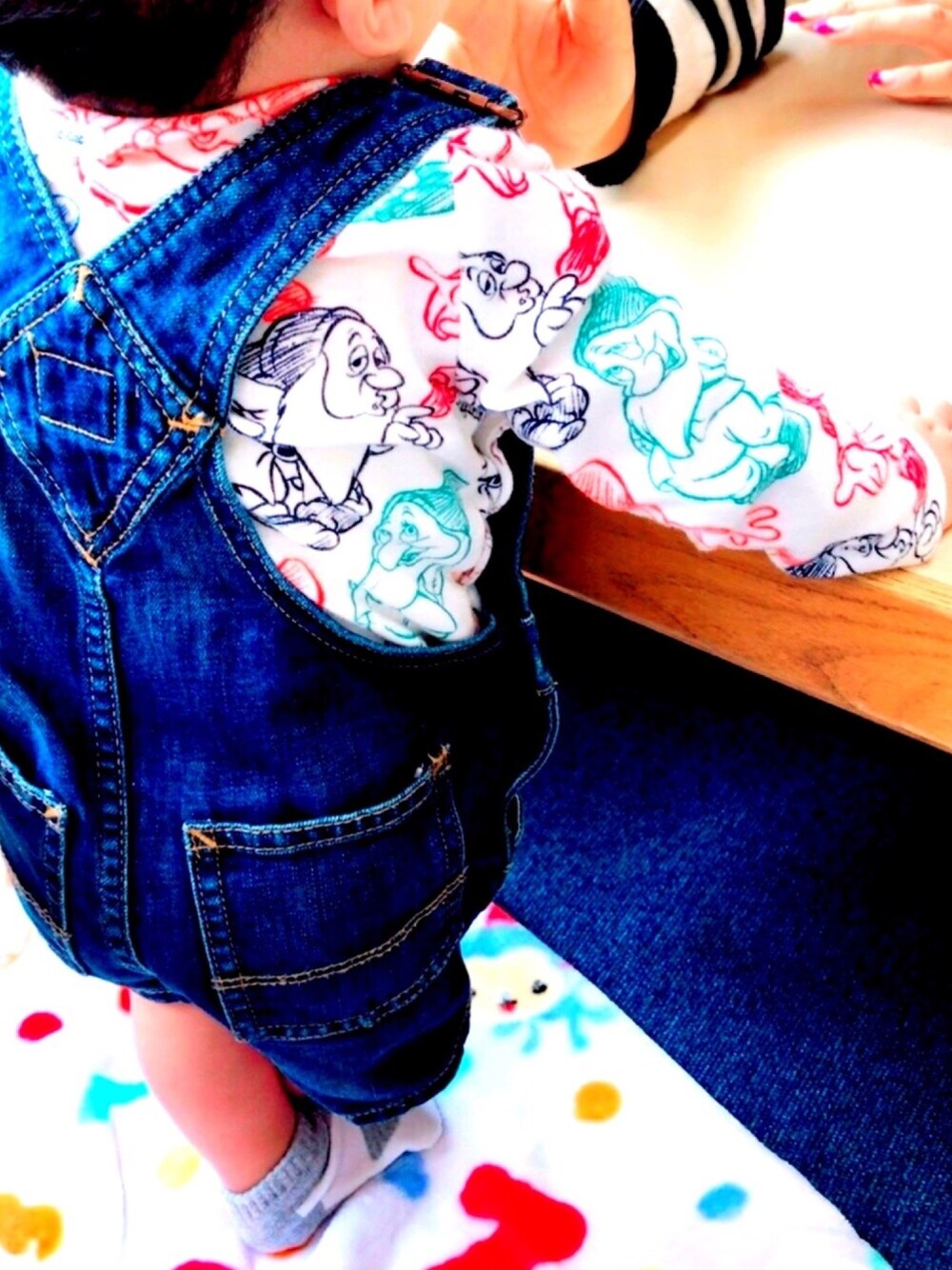 生後210日目 BABYGAPの白雪姫から7人の小人😊 赤ちゃんといえばオーバーオール☝🏻 靴下は自分で選んだジンベイザメさん size 白雪姫80 オーバーオール60