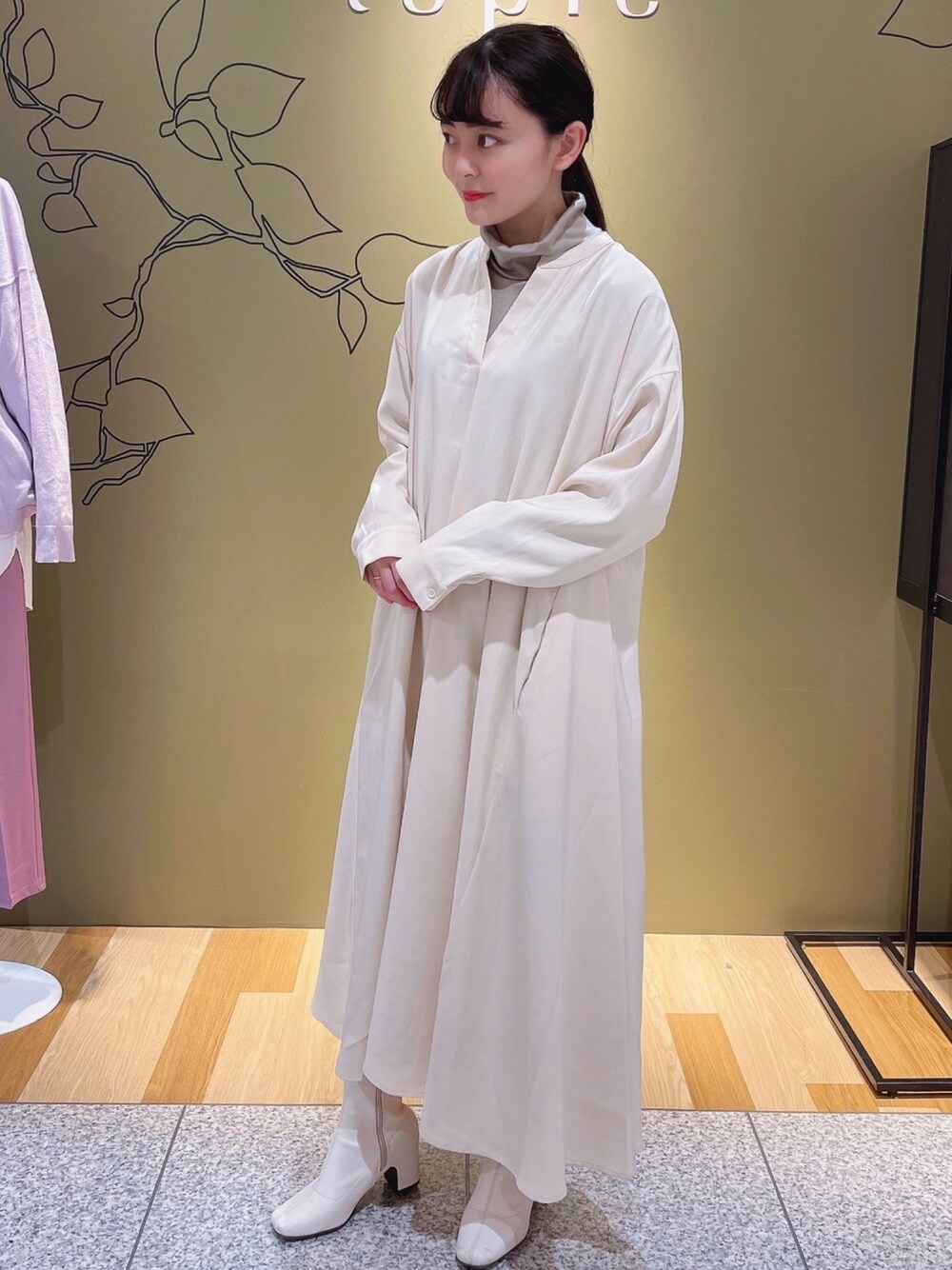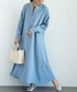 襟高カットインナー Aラインノーカラーシャツワンピース 今日のおすすめです♪