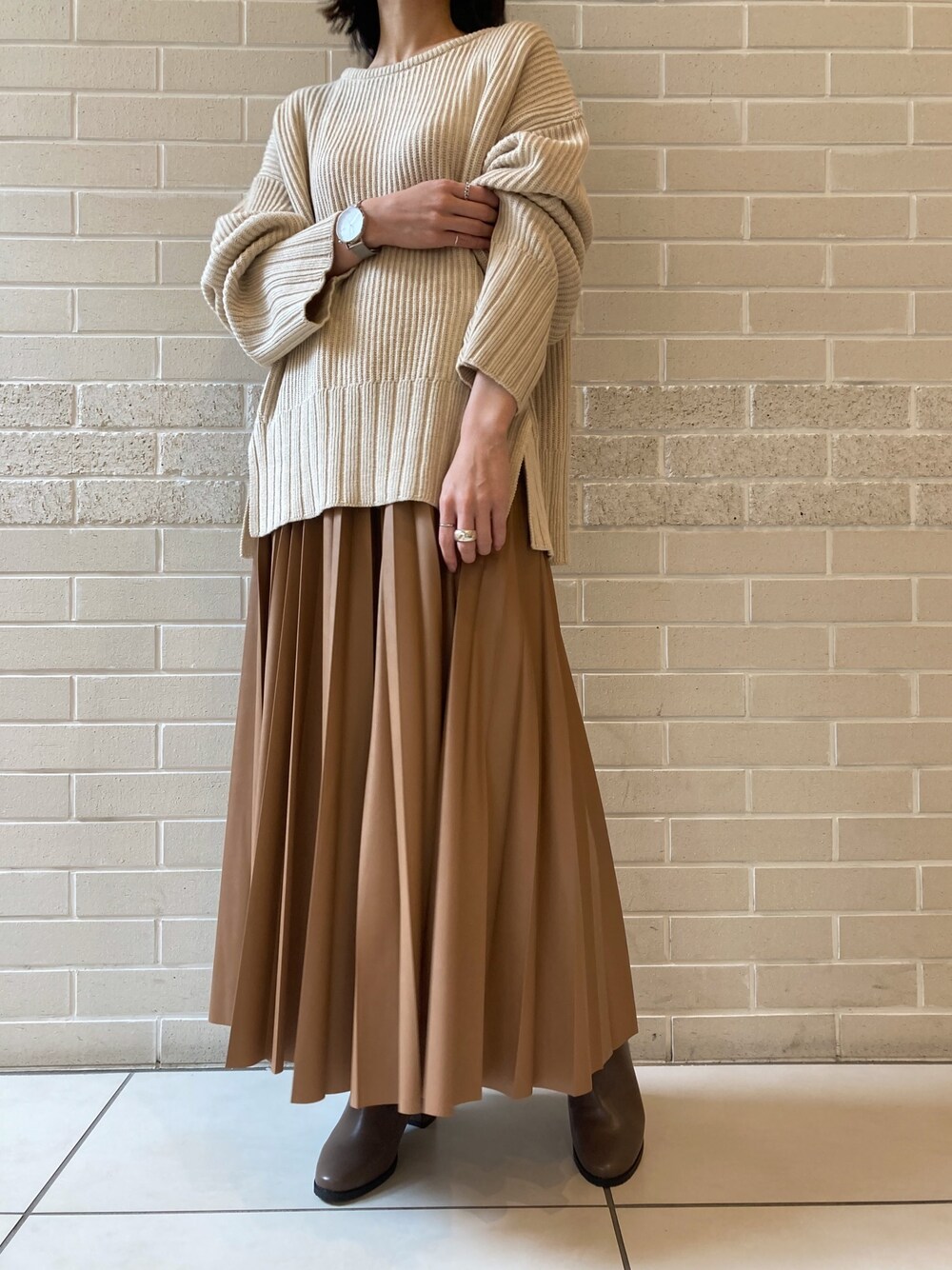 【8/23 限定 ZOZOTOTWNにて1,500OFFクーポン実施中🙌】 新作アイテム入荷しております🍁 ゆったりシルエットのニットにレザースカートを合わせて大人カジュアルコーデ🙆♀️