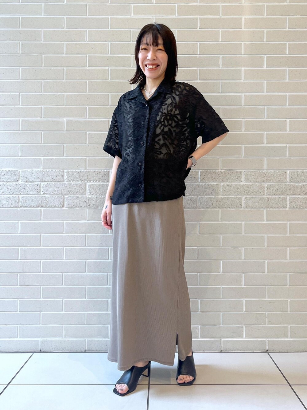 立体的なジャガード、ヘルシーな透け感。 タイトスカートを合わせてスッキリ。低身長をカバーできる縦長シルエット◎ ○シャツ 着丈はヒップの上くらい。コンパクトな丈感。 袖丈は肘くらい。気になる腕周りはカバーできます! ○スカート 程よくフィット。ストレッチ効きます! 153センチで着丈はくるぶしが隠れる丈感。 小柄な方でもフラットなシューズ合わせokな丈感です。 ✏︎Information ⚪︎JUNのアプリはお気に入りのコーディネートや、ショップスタッフに♡をタップ→フォロー頂くと【お気に入り】タブからご覧頂きやすくなります。 ⚪︎LINE接客はじめました 商品のお問い合わせや在庫確認など、LINEにてお気軽にお問い合わせ下さい。スタッフがお返事をさせて頂きます。 LINEでサロン アダム エ ロぺ ニュウマン新宿店スタッフに相談は【友達だち追加】をタップをして下さい <a href="https://lin.ee/PCneJMz" style="background:url(https://scdn.line-apps.com/n/line_add_friends/btn/ja.png); background-size: contain; display: block;width: 116px;height: 36px; margin:.5em 0;"></a> SALON adam et ropé NEWoMan新宿店 〒160‐0022 東京都新宿区新宿4-1-6 NEWoMan3F 03-6380-1750 営業時間 月-土 11:00-20:30 日.祝 11:00-20:00