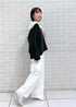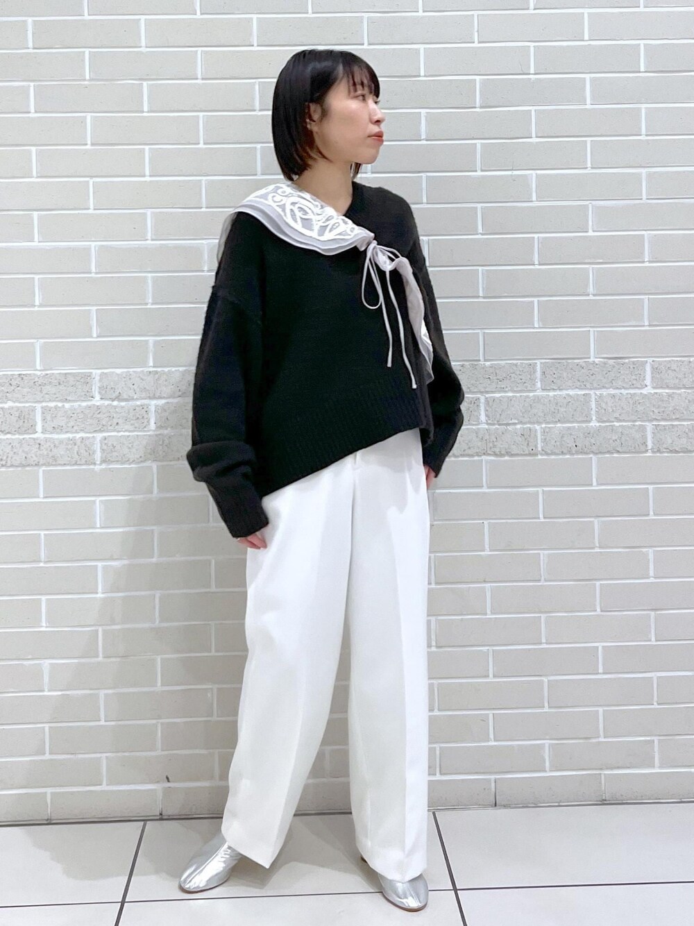 つけ襟を斜めにかけてコーディネートのポイントに! シンプルなアイテムも小物のプラスワンで印象が変わりますね♪