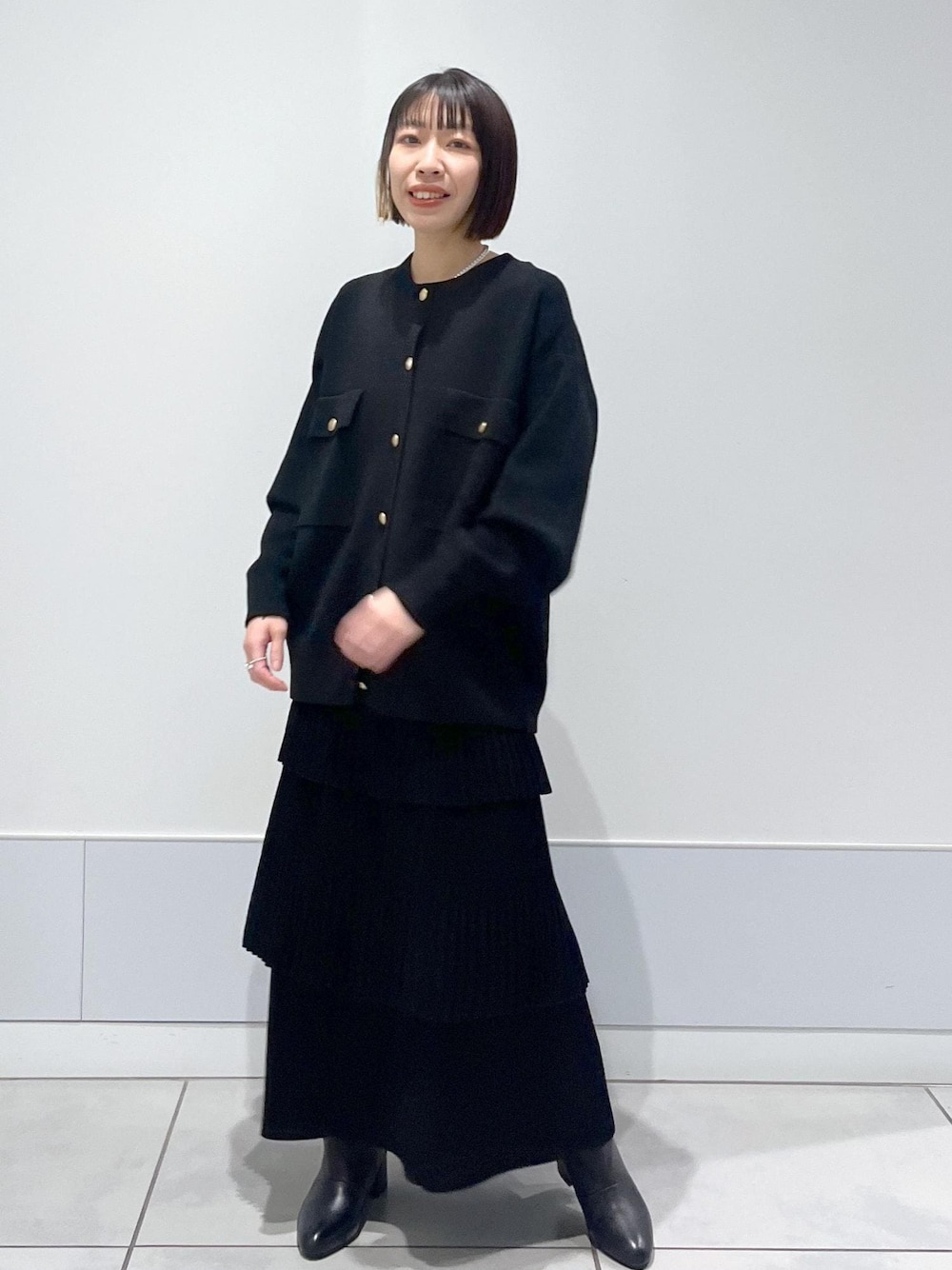 あえてゆったりなトップスを合わせてルーズなスタイルに。 足元はヒールを合わせて縦長効果◎ 店頭でも人気のコーディネートです!