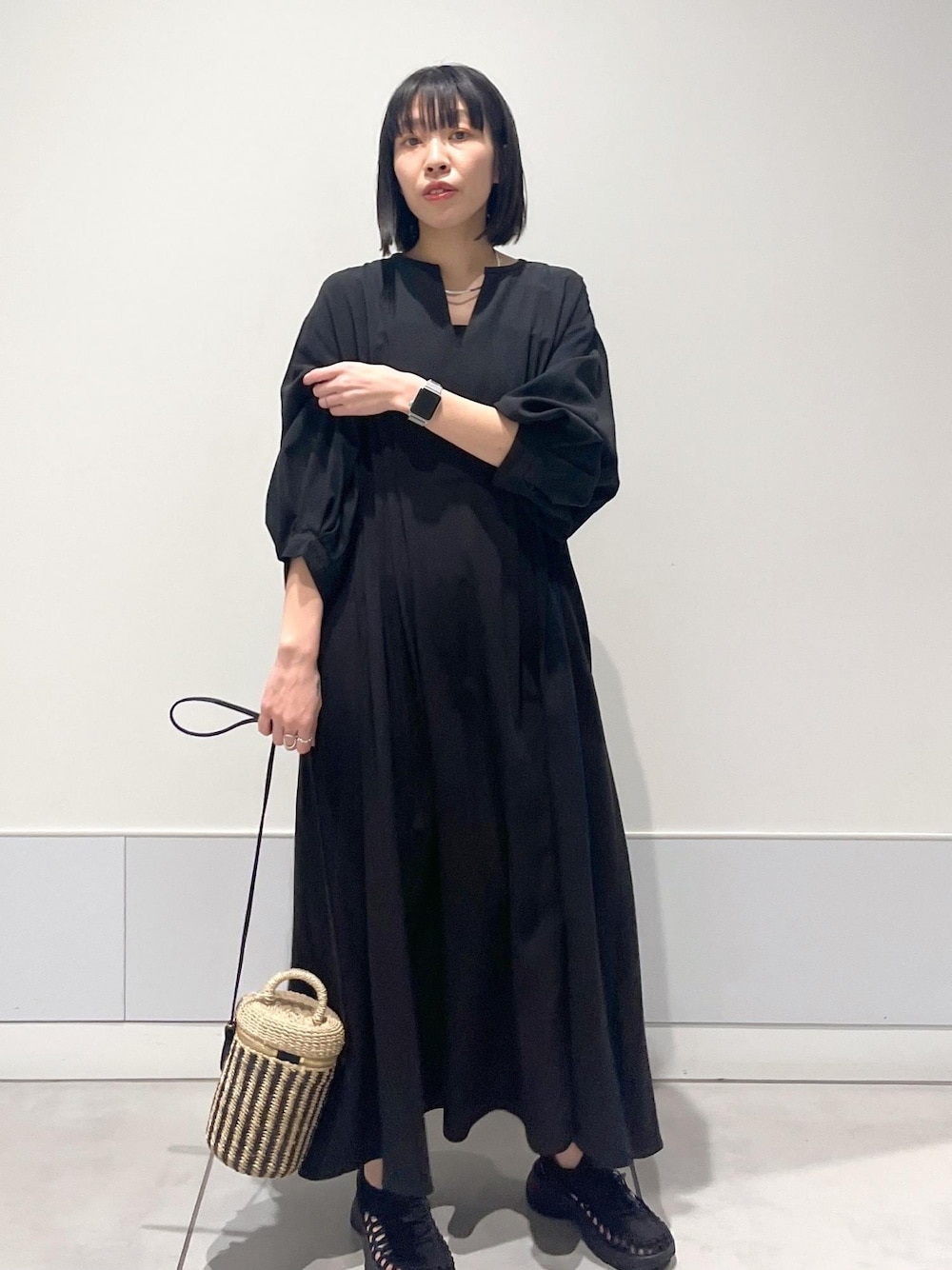 miku.(SALON adam et rope' 新宿NEWoMan)のワンピース「[24SS]ウエストタックワンピース【洗える】」を使ったコーディネート