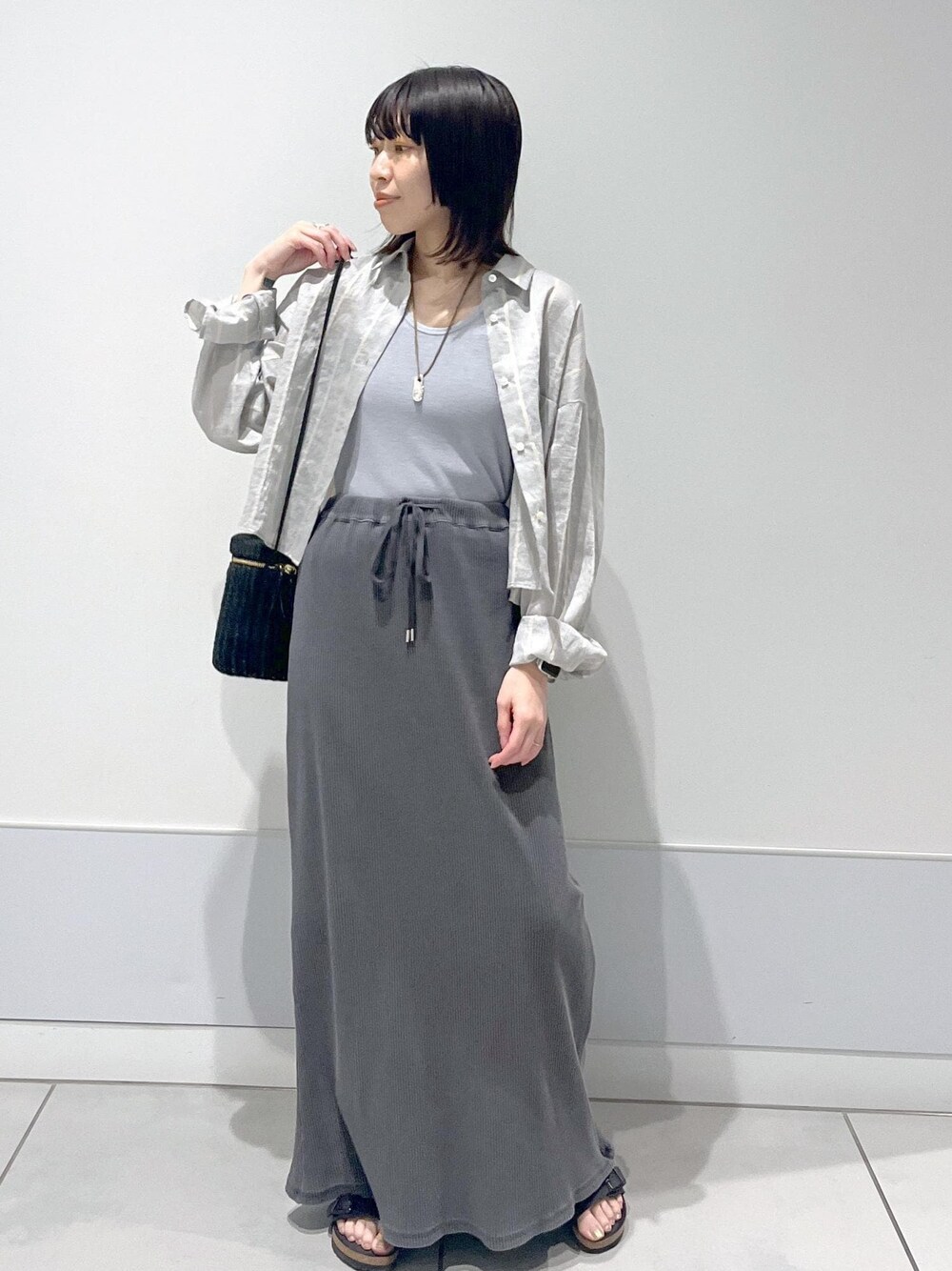 低身長さんにもおすすめなクロップド丈のシャツにリブのタイトスカートを合わせたワントーンコーデ。 軽くてシワが目立ちにくいので旅行やお出かけ時の持ち運びにもおすすめです!