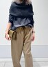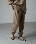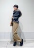 タートルネックのニットにジョガーパンツを合わせたシンプルなスタイル。 首元にファースヌードを合わせてポイントに◎