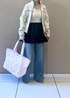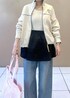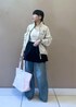 ブルゾン×デニムでカジュアルになりすぎないようにスカートをレイヤードしてフェミニン要素をプラス。