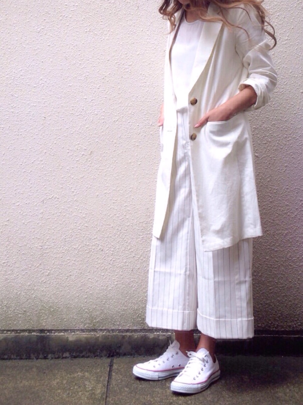 ライトな質感の 白ジャケット探してて やっと発見。 まさかのZOZO夏セールで 70%OFFの ¥2052でげっと これは…買うしかない( ̄ー+ ̄) ワイドパンツ合わせて ゆるーくな気分。