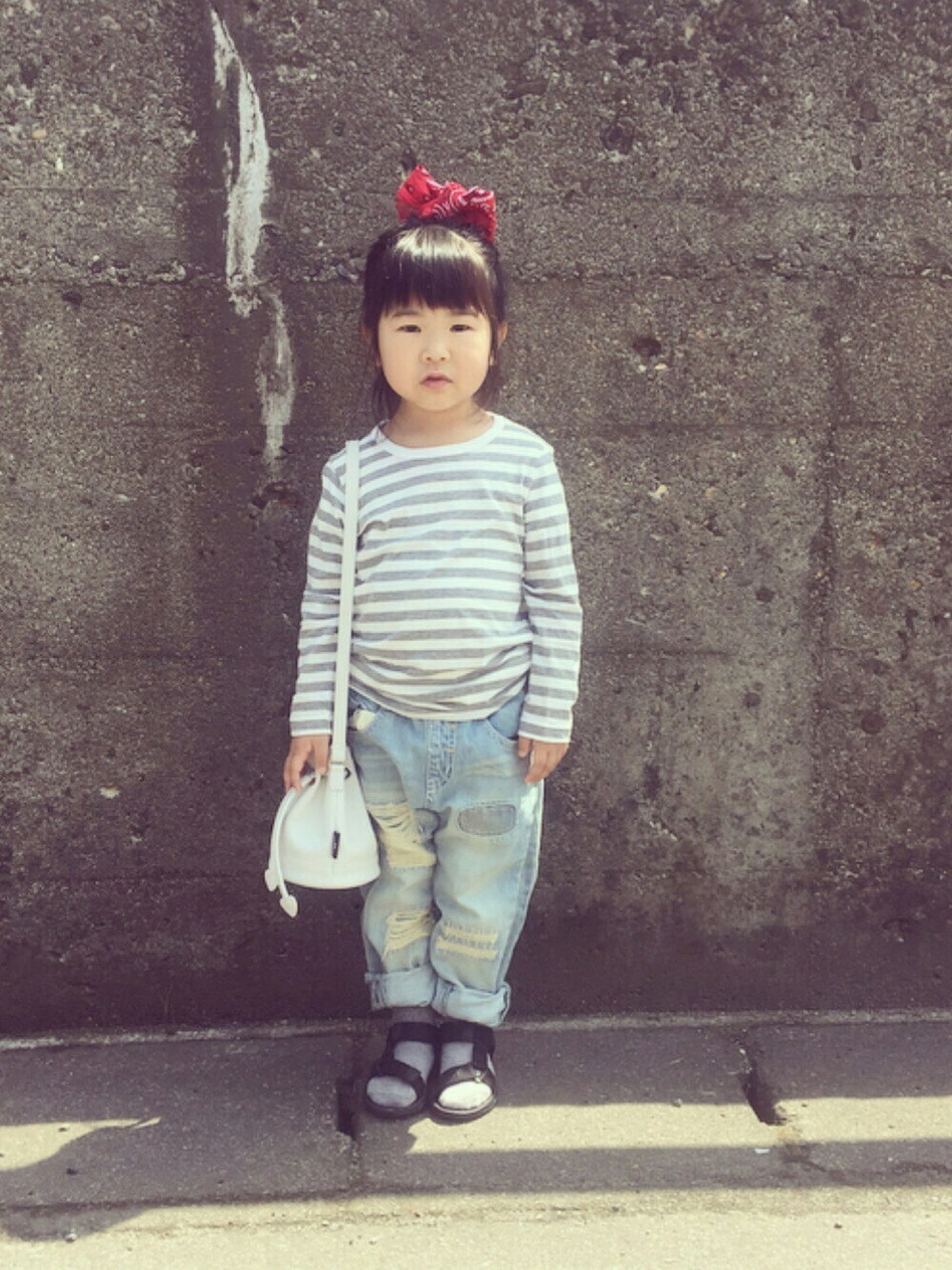 保育園コーデand休日コーデともにお世話になっているF.Oさんのドラフト参加させていただきます🎶 我が家がよく行くイオンにBREEZEショップが入っているので行くたびついつい覗いてしまいます…そして、ついつい買ってしまいます😅 このデニム、最初はネイビーを買ったけどこのダメージ具合がかわいくてサックスブルーも買っちゃいました😁ネイビーは100サイズでジャストで、こちらは120サイズなのでユルク履かせてます。これからの季節はサックスブルーの方が出番多くなりそう☺︎ 女の子のダメージデニムってなんか好き♡♡ 今日のバッグにはハイチュウとここたまのキラリスが入ってます☆*:.。. o(≧▽≦)o .。.:*☆ 前回のお久しぶりコーデにいいねand嬉しいコメントまでありがとうございます♡♡♡感謝です‼︎‼︎