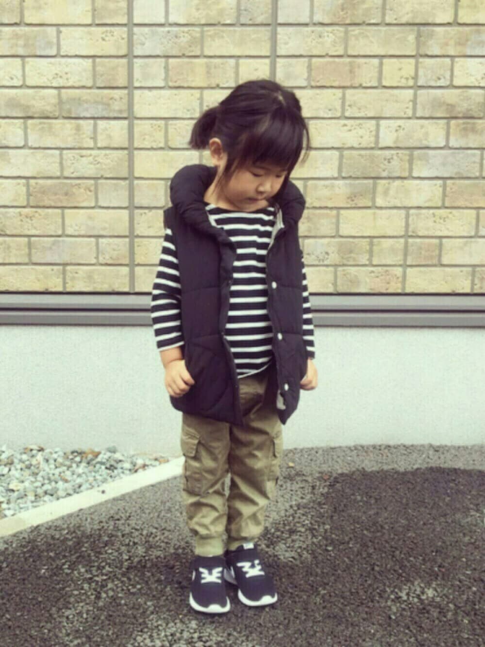 ボーイズライク♡ 急に肌寒くなりましたね🍂 去年悩みに悩んで購入しなかった西松屋のダウンベスト。 今シーズンも売ってました‼︎ 去年はネイビーとレッドのカラー展開だったような⁇⁇ 今年はネイビーとブラックが売られていました。 選んだのはブラック🎶 長く着せるためには120サイズ?と思ったけど丈が長くバランスがイマイチだったので110サイズ購入。 軽いし、お値段もさすが🐰屋さん💮💮 今度はワンピやスカートに合わせてみたいな…♡♡♡♡ いつも見ていただきありがとうございます☺︎☺︎☺︎