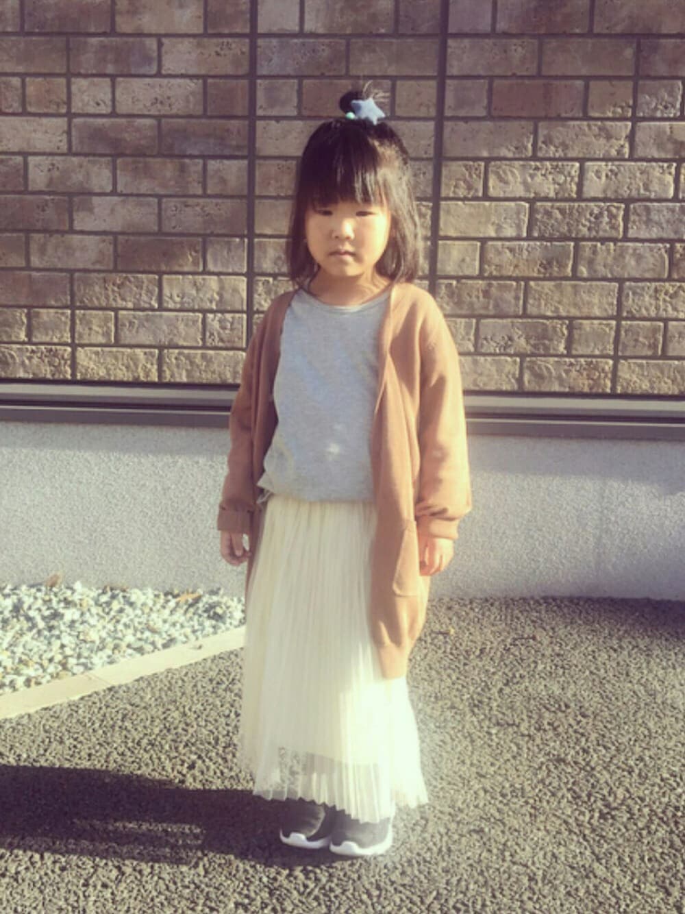 ロングカーデ✖︎ロングスカート このチュールスカートまるのお気に入り♡♡ グローバルワークに行く度に『こーいうのがほしーの』と言われてやっと買ってあげました☺︎ 連投失礼しました☺︎☺︎☺︎☺︎