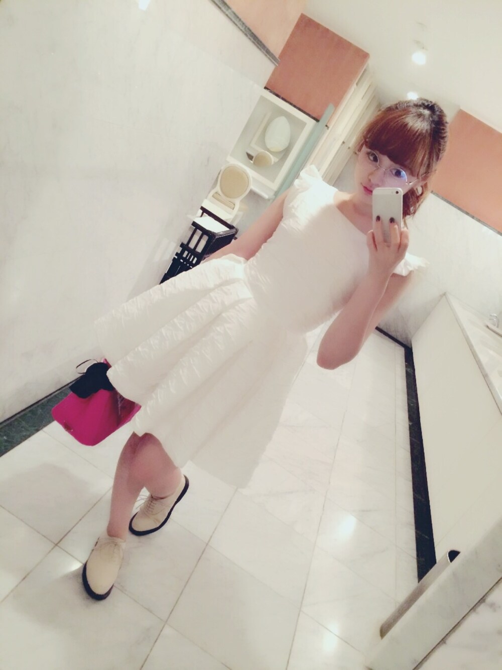 寝不足のテンションを 無理やりあげようと お気に入りのワンピースを ひっぱりだして久々に 着てみましたよ。 うん、白ワンピ。清楚。かーわいっ!