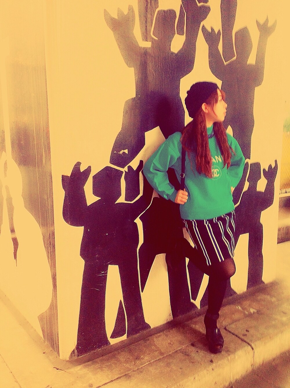 vintageのCHANELスエットは ハイネックでお気に入りです^ - ^☆ スエットLOVE〜(^O^)/ スカートはGUの超安いやつ☻