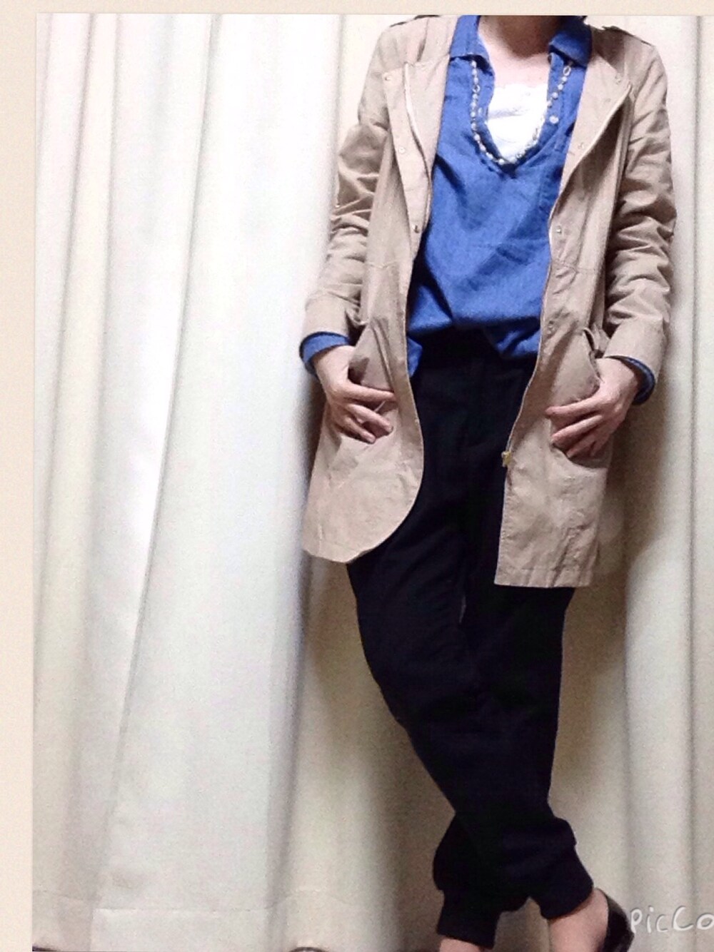 オフのOLさんコーデ ♫ トレンチコートとデニムシャツは母親の。