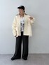 mmmi(omekashi 新宿ルミネエスト)のブルゾン「レザー襟取り外しカバーオール」を使ったコーディネート