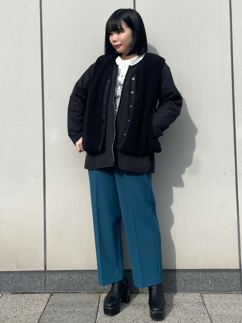 \ カラーパンツでパッと明るく可愛い🥏 / 休日お散歩コーデ🚶🏻♀️🌈 ハイウエスト×センタープレスで脚スラっと🌟 アウターはベストとロングスリーブの2点セット❕ どっちもリバーシブルなので着こなしは自分次第🌈 トップスも実は前後2way❕ 首元は少し広めなので首元が見えて華奢見え💮