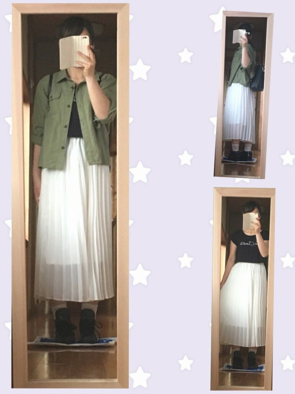 セーブ、いいね、見ていただきありがとうございます😊 白×カーキがすきで 黒×カーキもすきなのですが 今回は白でやわらかく😉 プリーツスカート久々に履きました! 中のTシャツはネイビーです✌️ 黒いリュックと黒のスニーカーでしめてます☺️ 皆さん、良い週末を〜🎶