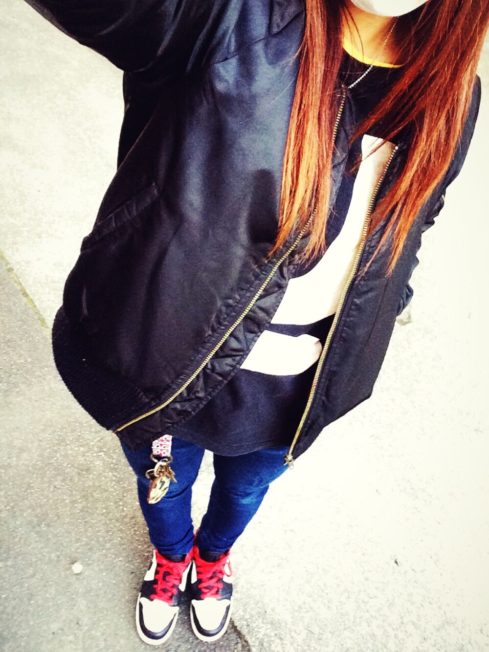 最近寒いのでMA-1おろしたのに 今日は割と暖かくて、、、😂😂🌞 アンカバがちらっと見える感じが好き🐒❣️