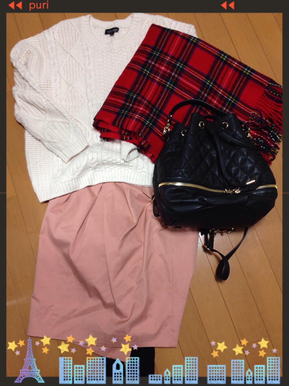 チェックストール好き このリュックは何にでも合うので便利 本革なのにお値段も素敵 (b・ω・d)イェァ♪