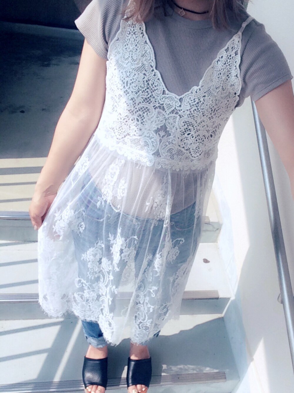 mitanのワンピース「【新色登場】【再入荷】【ZOZOワンピースランキング1位獲得】総フラワーレースロング丈キャミワンピース」を使ったコーディネート