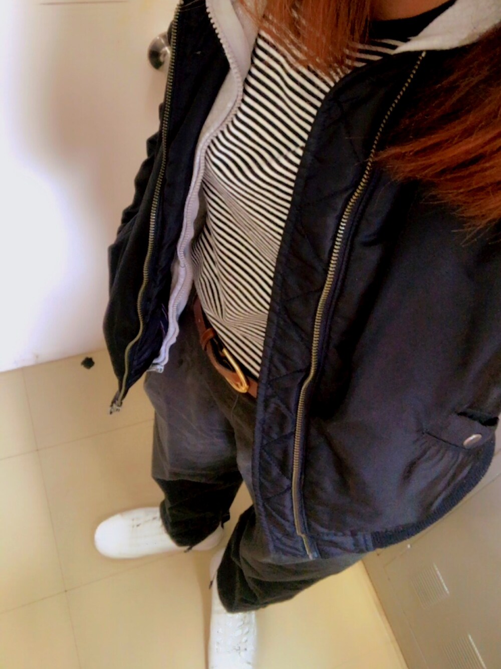 メンズチックな気分。 MA-1は彼氏のお下がり。