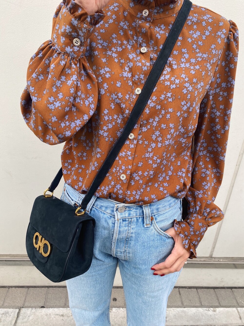 nishi(ROPE' ルミネ有楽町)のシャツ/ブラウス「【ドラマ着用】ヴィンテージライクフラワーフリルカラーブラウス」を使ったコーディネート