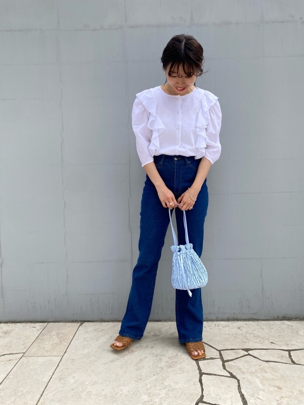 ラッフルコットンフリルブラウス 大人可愛いラッフルフリルブラウス フリル幅が控えめなので甘くなり過ぎずに、大人も楽しめるフリルブラウスです! ブラウスが映えるよう、デニムとの王道コーデにしました♪ 5分袖なので、羽織いらずで1枚でスタイルが完成し、 二の腕カバーも出来してくれます◎ タイトスカートやカラーパンツなどと合わせたスタイリングもおススメです☺ Instagram ▶︎@m.24_made LINEでマドモアゼルロペ有楽町ルミネスタッフに相談は【友だち追加】をタップをして下さい。