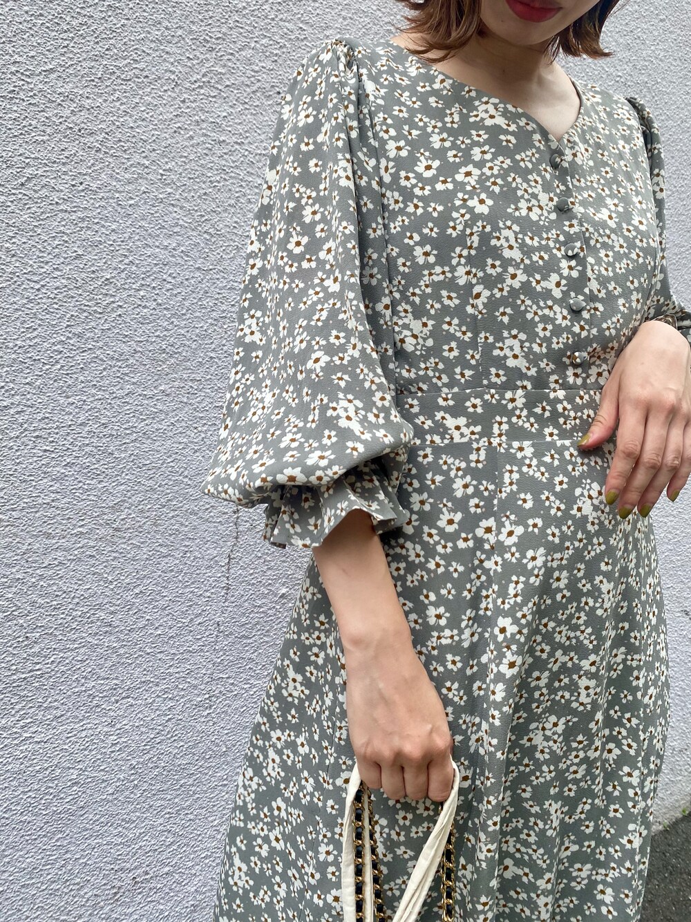 【WEB限定】パフスリーブマーメイドラインワンピース スタイルアップ効果抜群の美シルエットワンピース♡ ヴィンテージライクなくすみグリーンの花柄に、コンバースを合わせてフェミニンカジュアルなコーデにしました♪ *こちらのワンピースはWEB限定発売商品です ▶︎お問い合わせNo.GWE51060 ■身長/普段のサイズ 155cm/36サイズ(パンツは物により34サイズ) ■着用サイズ 38サイズ(ワンサイズ) 【素材感/着心地】 さらっとした肌触りで柔らかい生地です。伸縮性はないですが、ウエストが細くなっている位置の後ろ側がギャザーになっているので窮屈感もなく着心地は楽でした◎ 裏地はないですが透け感は気にならず、シワも目立ちにくかったです! 【サイズ感】 ジャストサイズでした! 着丈はくるぶしくらいでフラットシューズでも床に着かない長さです。 胸元はインナーが見えないくらいの開き具合で、屈んでもガバッと開いてしまう事はなかったです。 ウエスト切り替え部分が細くなっていて、切り替え位置も高いので、ウエストが細く、脚も長く見える美ラインです♪ 【おすすめスタイリング】 スニーカーでカジュアルにも、バレエシューズでヴィンテージライクにも、ショートブーツ合わせでフェミニンにも、足元変化でイメージを変えて楽しめるワンピースです☺︎ インナーに薄手のタートルなど、レイヤードスタイルも可愛いです♡ Instagram ▶︎@m.24_made