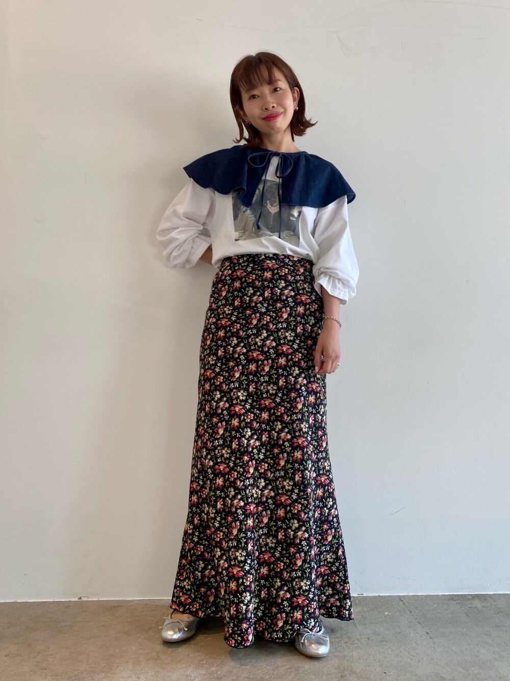 JOSEPH SZABO フォトプリントボリュームスリーブT ニューヨークで活躍するフォトグラファー、ジョセフスザボの代表的な写真をプリントしたTシャツ Tシャツでもカジュアル過ぎない袖フリルデザインがポイント! 花柄スカート&付け襟でさらにデコラティブに、フェミニンなコーディネートにしました☺︎ ■155cm/36サイズ/骨格ウェーブ ■着用サイズ:F(フリー) 【素材感/着心地】 とても柔らかく、白でも透け感はあまり気にならなかったです! 袖口のゴムも細めで柔らかいので締め付け感はなかったです。 【サイズ感】 着丈はヒップが隠れるくらいの長さで、タイトスカートや細身のパンツなら出して着てもバランス良かったです◎ ややゆったりしています。袖もボリューム感がありますが、そのたっぷり感が可愛いと思いました♡ 肩が少し落ちたデザインなので薄手のタートルを中に着てレイヤードも楽しめるサイズ感です。 【おススメスタイリング】 袖にデザインがあるので一枚で着ても様になりますが、 カーディガンを羽織って袖のフリルを出したり、キャミワンピースやサロペットのインナーとしてレイヤードスタイルで着るのも可愛いです♪ Instagram ▶︎@m.24_made