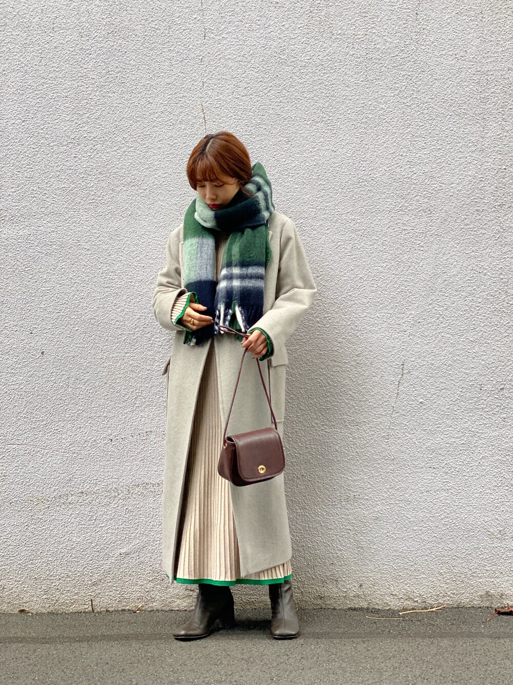 毎年大人気のペコラムウールコート ニットセットアップと合わせて綺麗めなコーディネートにしました!