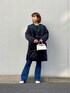 ハートプリントのブラウスもダークカラーでまとめると大人に雰囲気に。 小物をホワイトにしてフェミニン感を+したのがポイントです! 大きめのビッグカラーのブラウスは、着るだけでパッと華やかな雰囲気にしてくれるので、 お友達とのお食事やイルミネーションデートの時にもおすすめです♪