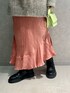 ピンクのアシンメトリースカートは、ダークトーンが増える秋冬コーデを、ぐっと華やかにしてくれます。 デニムの襟を合わせて今年らしくコーディネートしました♪ 【MES DEMOISELLE】ラッフルタイトスカート お問い合わせNo.BYC81640 ■身長/普段のサイズ/骨格タイプ 155cm/36サイズ/ウェーブ ■着用サイズ F(フリーサイズ) 【素材感/着心地】 少しツヤ感があり薄手の生地です。裏地はなくピンクはやや透けるので、お手持ちのペチコートを履くかお尻まで隠れる長さのトップスを合わせた方が安心です。(写真はペチコートやタイツは履いてません) ウエストのゴムは柔らかいので窮屈感無くストレスフリーでした。 色むら加工がされておりヴィンテージ感のある色味なのでピンクでも甘くなり過ぎないところが◎ 【サイズ感】 ウエストゴムなのでウエストにややゆとりはありますが腰で止まるのでちょうど良かったです。 ヒップ周りがすっきりしていて、シルエットが綺麗です! 裾がアシンメトリーになっていて、短い所で足首が見えるくらい・長い所でくるぶしにかかるくらいの長さでした。 長過ぎないので小柄な方でもシューズを選ばずに着やすい着丈だと思います。 ▶︎【MES DEMOISELLES (メドモアゼル)】 フランス発のブランド、デザイナーのAnita Radovanovicが手掛ける。 Mes Demoiselles(マドモアゼル)とはフランス語で「女の子」を意味し、全ての女性の心にある(少女)をブランドコンセプトにデザインされています。 Instagram ▶︎@m.24_made