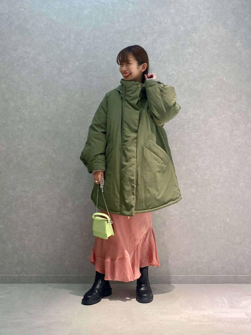ALLIEDモンスターダウンコート 今年らしいモンスターパーカーに マーメイドスカートと小振りなバッグを合わせてカジュアル過ぎないコーデにしました。 カーキはモッズコートのようなミリタリー感があるので、ワンピースや揺れ感のあるスカートなど甘さをプラスして甘辛ミックスなスタイリングもオススメです☺︎ 【ALLIEDモンスターダウンコート】 お問い合わせNo.GWL41500 ■身長/普段のサイズ/骨格タイプ 155cm/36サイズ/ウェーブ ■着用サイズ F(フリーサイズ) 【素材感/着心地】 すごく軽いです!アライド社の上質なダウンなので軽量でもふんわり身体を包んでくれる暖かさです◎ 表面の生地はマットな質感で柔らかいです。 内側はつるっとしたタフタ素材で、静電気を防止してくれるので着脱時の不快感を軽減してくれるのが嬉しいポイントです! 【サイズ感】 とてもゆったりですが、そのゆるっとしたサイズ感が抜け感があってスポーティー過ぎず今年らしい雰囲気になります♪ ヒップがすっぽり隠れ脚の付け根くらいの着丈です。身幅、アームホール共にゆとりがあるのでスウェットなど地厚なものの上に着ても窮屈感無く着れます。 裾を絞らずに着るとテントライン、絞るとコクーンニットシルエットになるので、シルエット変化も楽しめます。 Instagram ▶︎@m.24_made