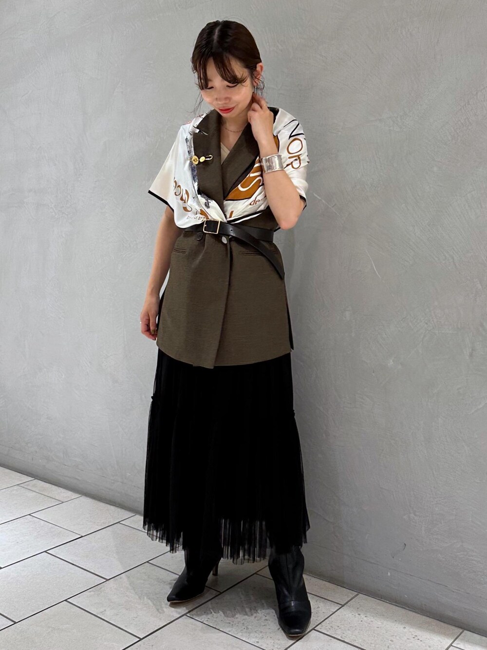 nishi(ROPE' ルミネ有楽町)のスカート「ソフトチュールティアードスカート」を使ったコーディネート