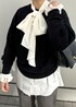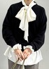 リアルバイしたボウタイブラウスは 着丈長めに着たかったので 38サイズを購入しました♪ ニットとレイヤードした時に袖から覗く 袖のフリルもお気に入りポイントです♡ ※記載のないアイテムはスタッフ私物です。 ※店頭及び屋外での撮影画像は、光の当たり具合で色味が異なって見える場合がございます。 商品の色味はスタジオ撮影の画像をご参照下さい。