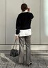 nishi(ROPE' ルミネ有楽町)のハンドバッグ「【雑誌掲載】リアルレザーパフィーフラップチェーンミニショルダーバッグ」を使ったコーディネート