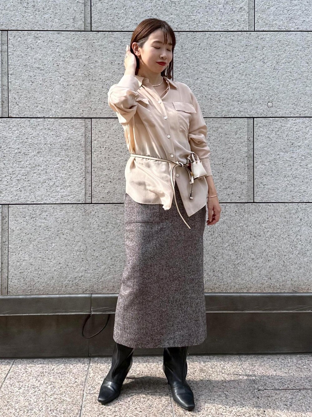 シャツ×タイトスカートの定番キレイめコーデも とろみのあるシャツに変えるだけで きちんと感はありつつ柔らかい雰囲気に♪ リアルバイしたシルクレーヨンのシャツは 肌あたりがとっても滑らか。 軽い着心地で、中にタートルを入れても、 ジャケットやニットの中に着ても◎ 重ね着が増えるこれからの時期にも重宝しそうです♡ ※記載のないアイテムはスタッフ私物です。 ※店頭及び屋外での撮影画像は、光の当たり具合で色味が異なって見える場合がございます。 商品の色味はスタジオ撮影の画像をご参照下さい。