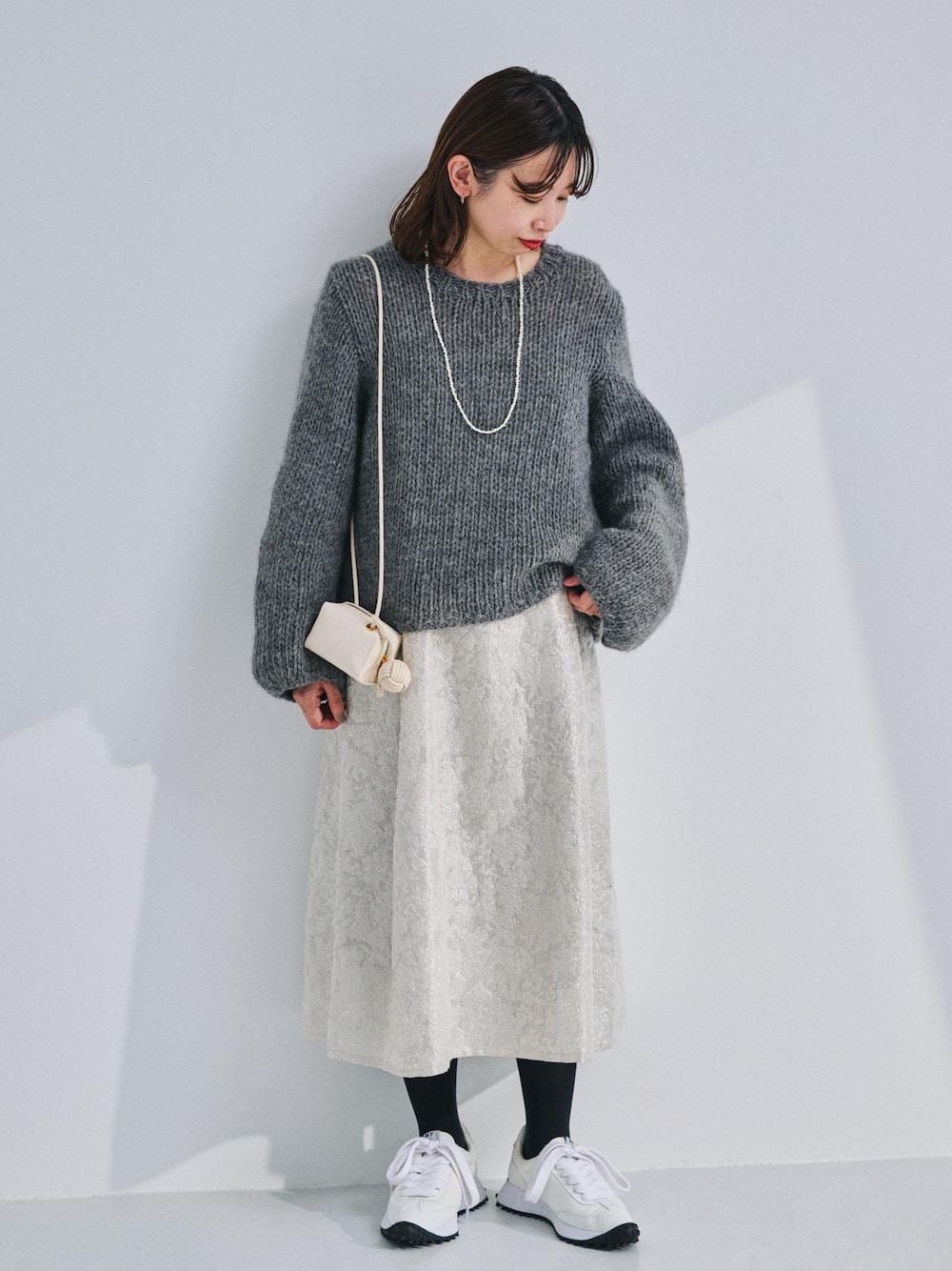 贅沢に全面にスパンコールを刺繍したワンピースが主役に ニットとスニーカーでカジュアルダウンさせたoffコーデです♪ 着るだけでわくわくする、気分が上がるワンピースは 特別な日にももちろん、 何気ない普段のお出かけにもおすすめです。 ※記載のないアイテムはスタッフ私物です。 ※店頭及び屋外での撮影画像は、光の当たり具合で色味が異なって見える場合がございます。 商品の色味はスタジオ撮影の画像をご参照下さい。