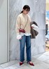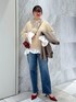 新作のスタンドフリルブラウスを使った 春まで着れるフェミニンカジュアルコーデ♪ ニットにデニムのシンプルなstylingも ブラウスをレイヤードすると 一気に華やかに新鮮なコーデに◯ スタイリングが新鮮になるので 今から春まで着れて、冬物のプラスワンにもおすすめです☺︎ ※記載のないアイテムはスタッフ私物です。 ※店頭及び屋外での撮影画像は、光の当たり具合で色味が異なって見える場合がございます。 商品の色味はスタジオ撮影の画像をご参照下さい。
