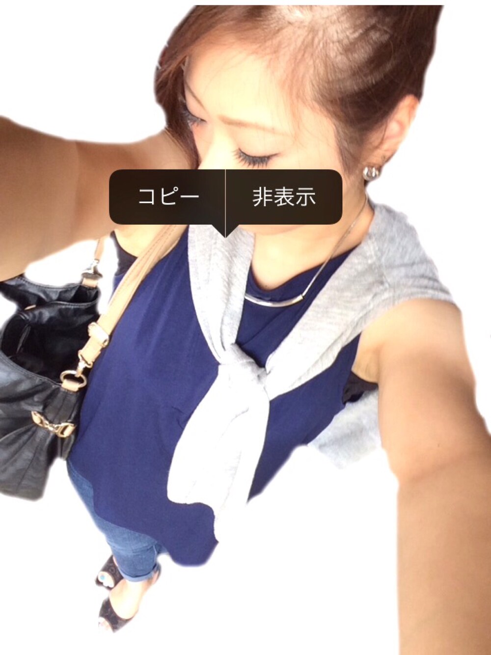 本日、ちょっぴり大人コーデ♡ ネイビー×グレー(シルバー) 髪はポニーテールで!笑 前髪少し残して巻き巻き♪