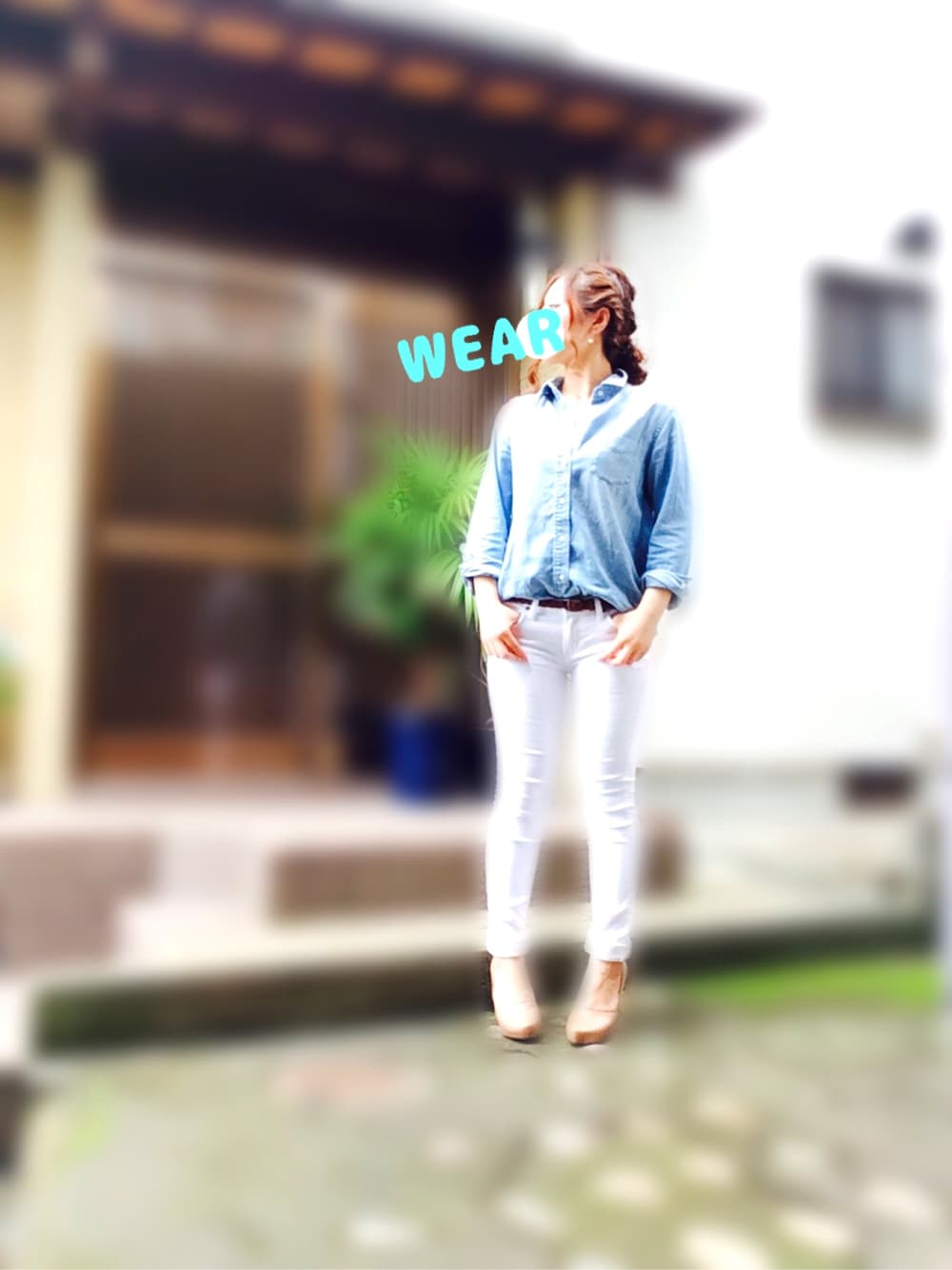 白パンコーデ。 薄い色のデニムシャツを合わせて スッキリ爽やかに(笑) 夜は、職場の先輩とご飯♡