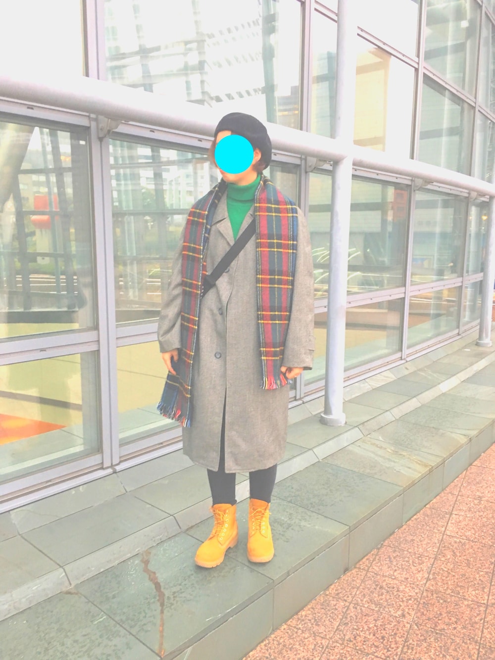 祖父のウール100%コートと母の緑のタートルネックのおさがりコーデです。 全体的にシュッとなるように仕上げるました〜。