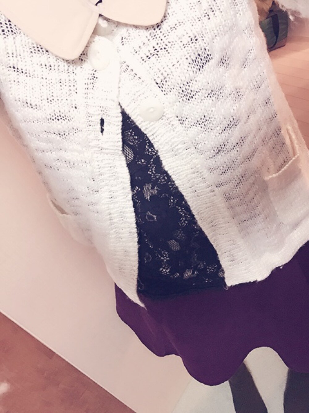 さっきのベージュのカーディガンを変えて白のニットにしてみました*´ㅅ`)"